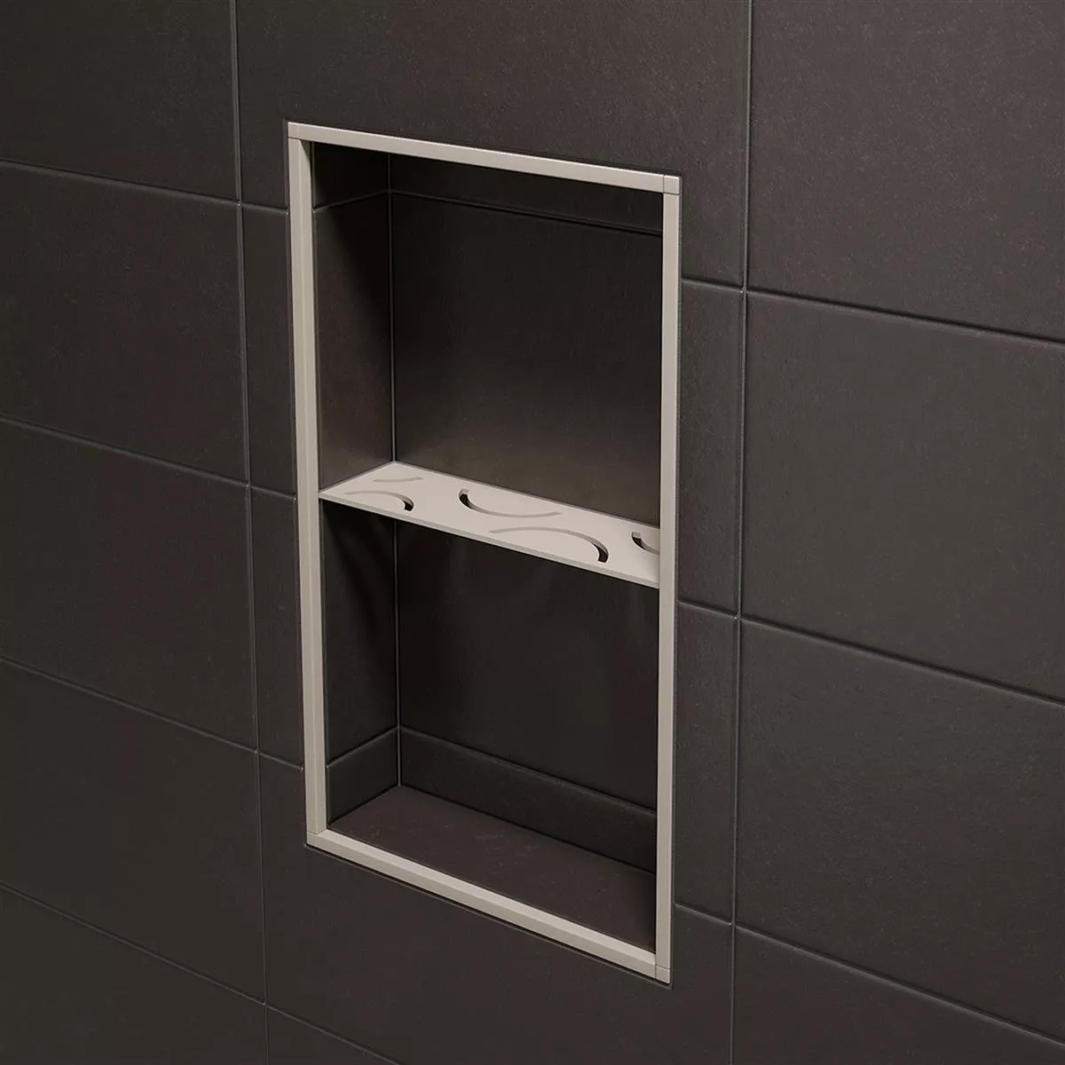 Schlüter-SHELF-N-S1 Cream Rechteckige Nischen-Wandablage Mit Schlüter-SHELF-N-S1 können Sie während der Fliesenverlegung die vorgefertigte Nische Schlüter-KERDI-BOARD mit einer passgenauen Ablage ausstatten. Damit nicht genug: Sie haben hier auch noch maximale Flexibilität in Sachen Material und Design. So ist die hochwertige Nischen-Wandablage entweder aus gebürstetem Edelstahl oder strukturbeschichtetem Aluminium gefertigt.