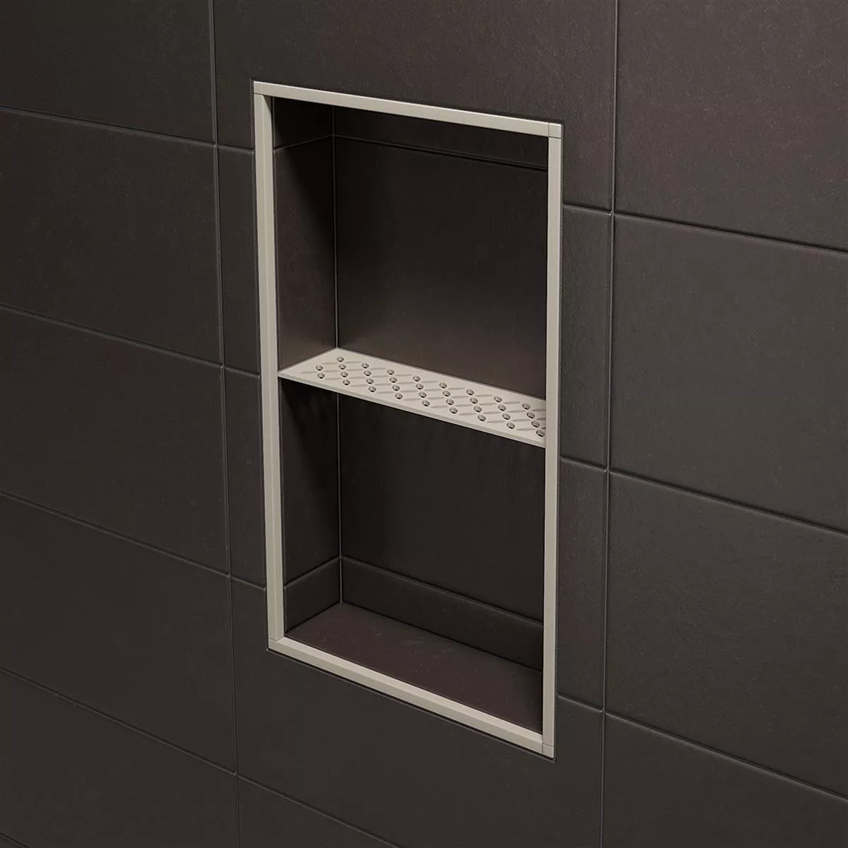 Schlüter-SHELF-N-S1 Creme Rechteckige Nischen-Wandablage Mit Schlüter-SHELF-N-S1 können Sie während der Fliesenverlegung die vorgefertigte Nische Schlüter-KERDI-BOARD mit einer passgenauen Ablage ausstatten. Damit nicht genug: Sie haben hier auch noch maximale Flexibilität in Sachen Material und Design. So ist die hochwertige Nischen-Wandablage entweder aus gebürstetem Edelstahl oder strukturbeschichtetem Aluminium gefertigt.