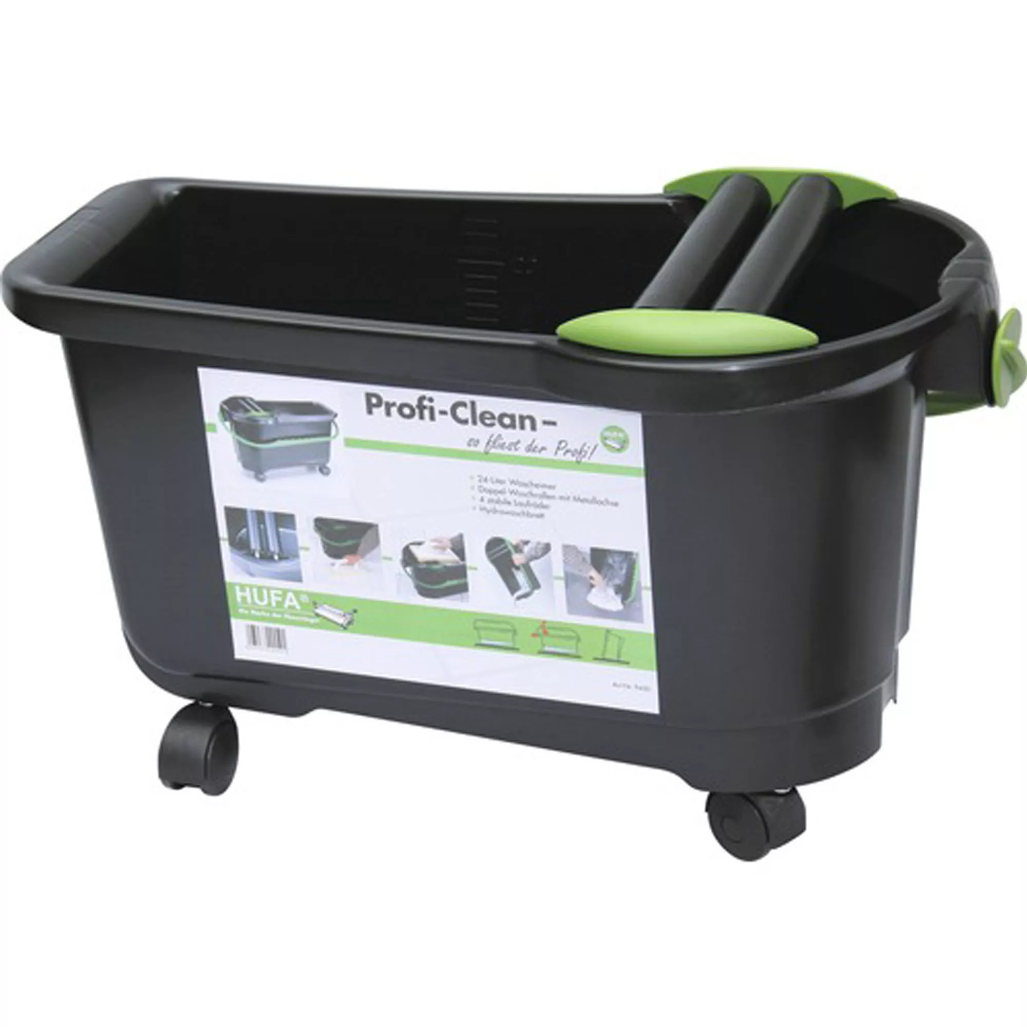 Das Profi Clean Waschset für die Reinigung von Fliesen oder mit Mosaik bestückten Oberflächen besteht aus einem 24 Liter-Eimer inklusive Doppelrollenaufsatz.