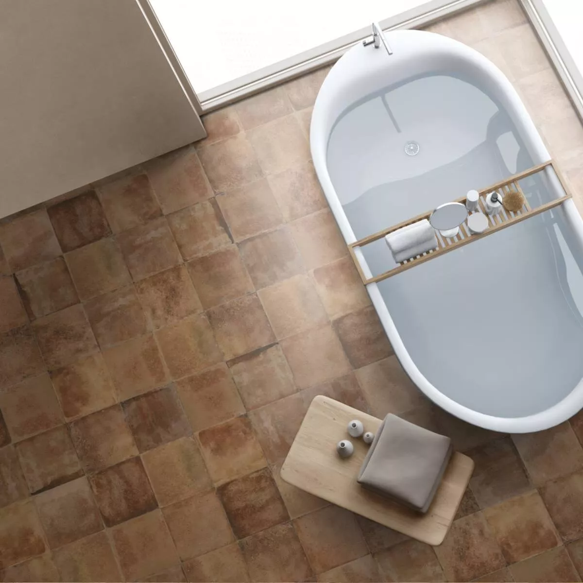 Mit ihrer matten, strukturierten Oberfläche in Dunkelbraun fügen sie sich nahtlos in jedes Einrichtungsthema ein. Darüber hinaus sind die Queens Fliesen robust genug, um als Gewerbefliesen in Bereichen mit hohem Verkehrsaufkommen eingesetzt zu werden.