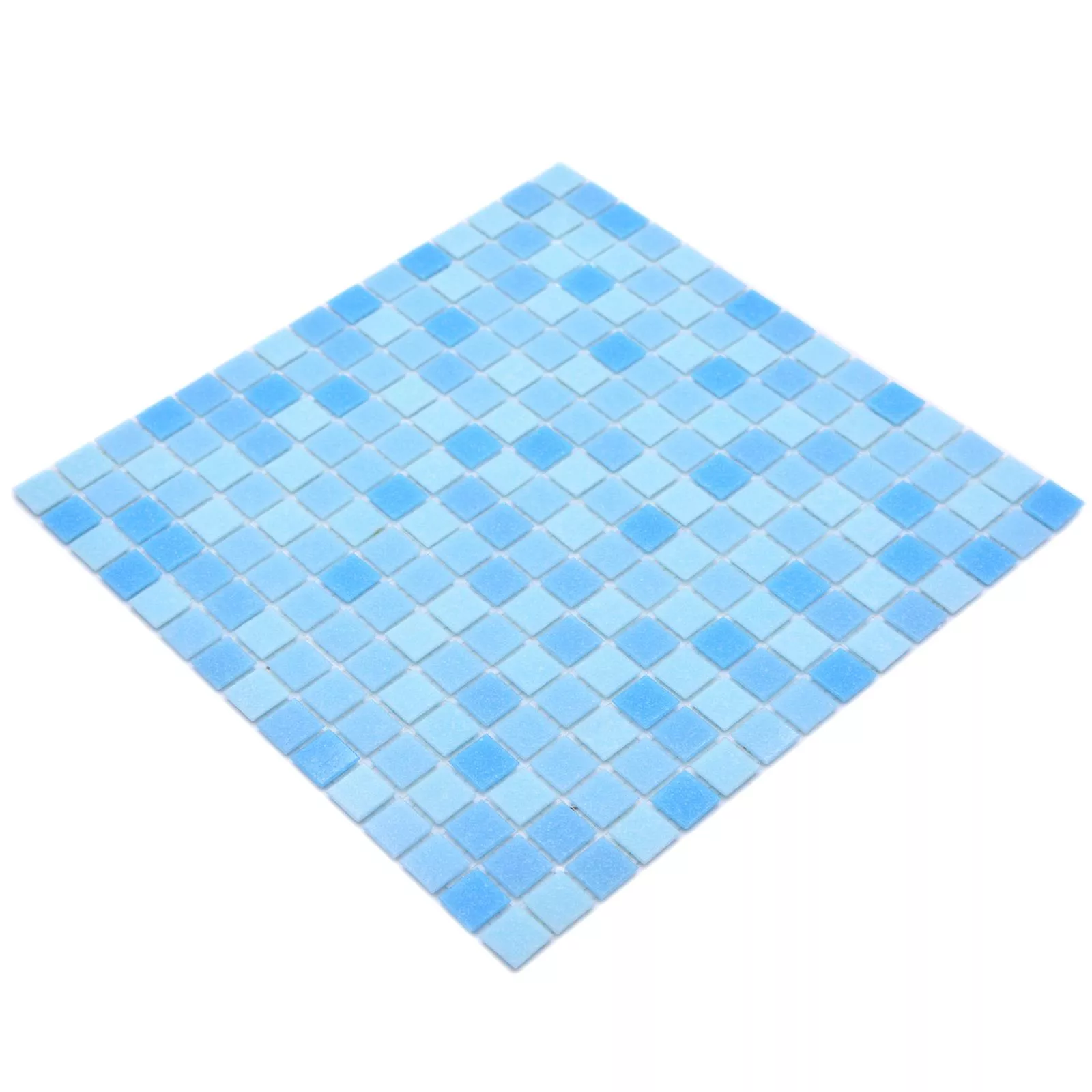 Unsere Fliesen für Ihr Schwimmbad: Der intensive Hellblau Mix wird den Pool in ein ansprechendes Nass verwandeln, denn das Wasser erhält eine wunderbare klare Farbe. Von weitem erscheint es als hätten Sie sich die Nord See nach Hause geholt. Es sind Mosaikfliesen, die auf einzelnen Matten papierverklebt sind, damit die Verlegung schnell von der Hand geht. Dazu bedarf es nicht nur eine Profihand. Die quadratischen Matten lassen sich einfach in den Pool verlegen. Mit einem Messer kann das Gewebe geschnitten werden und der benötigten Größe angepasst werden.