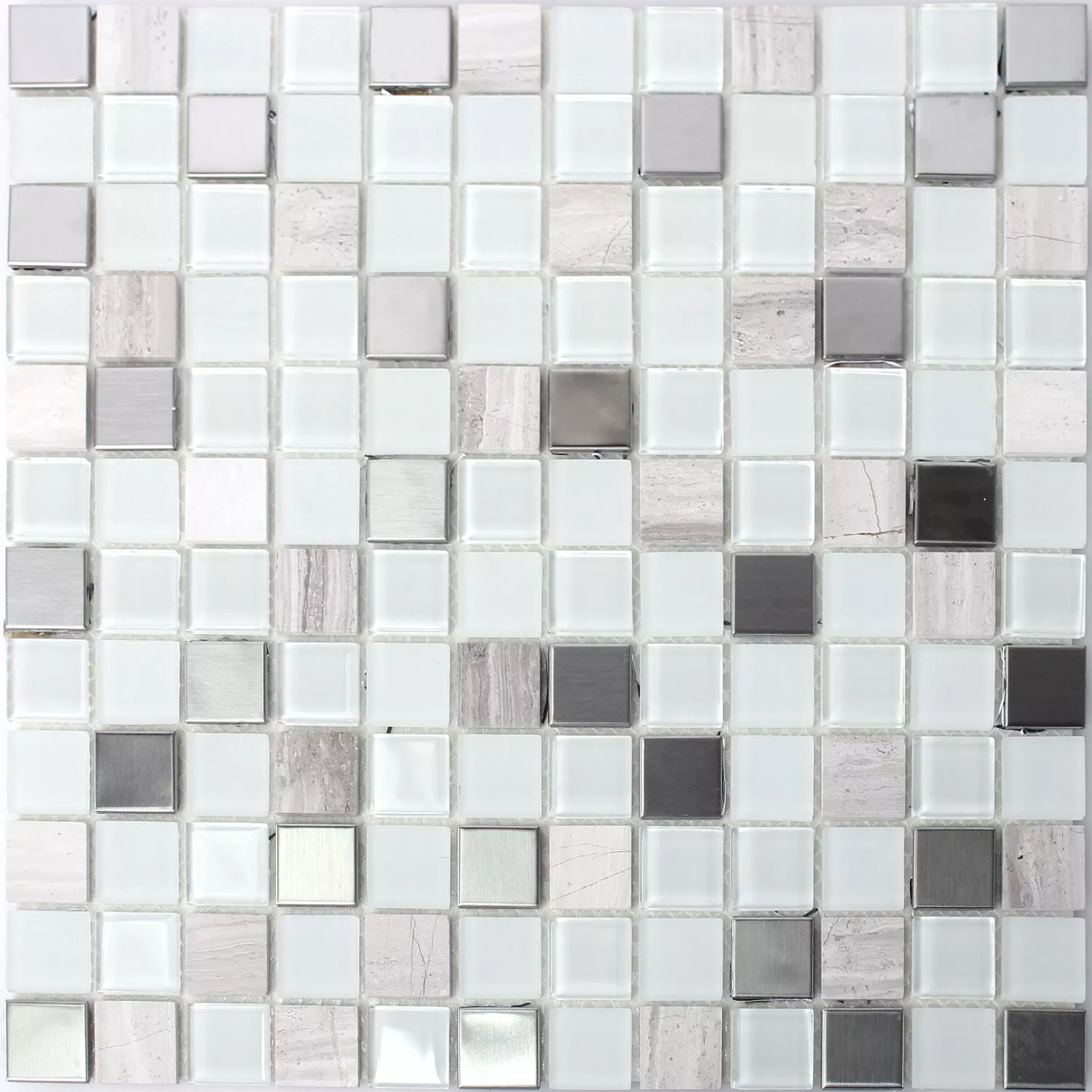 Glas Naturstein Edelstahl Mosaikfliesen Starcrest Weiß Silber Grau Selbstklebend
