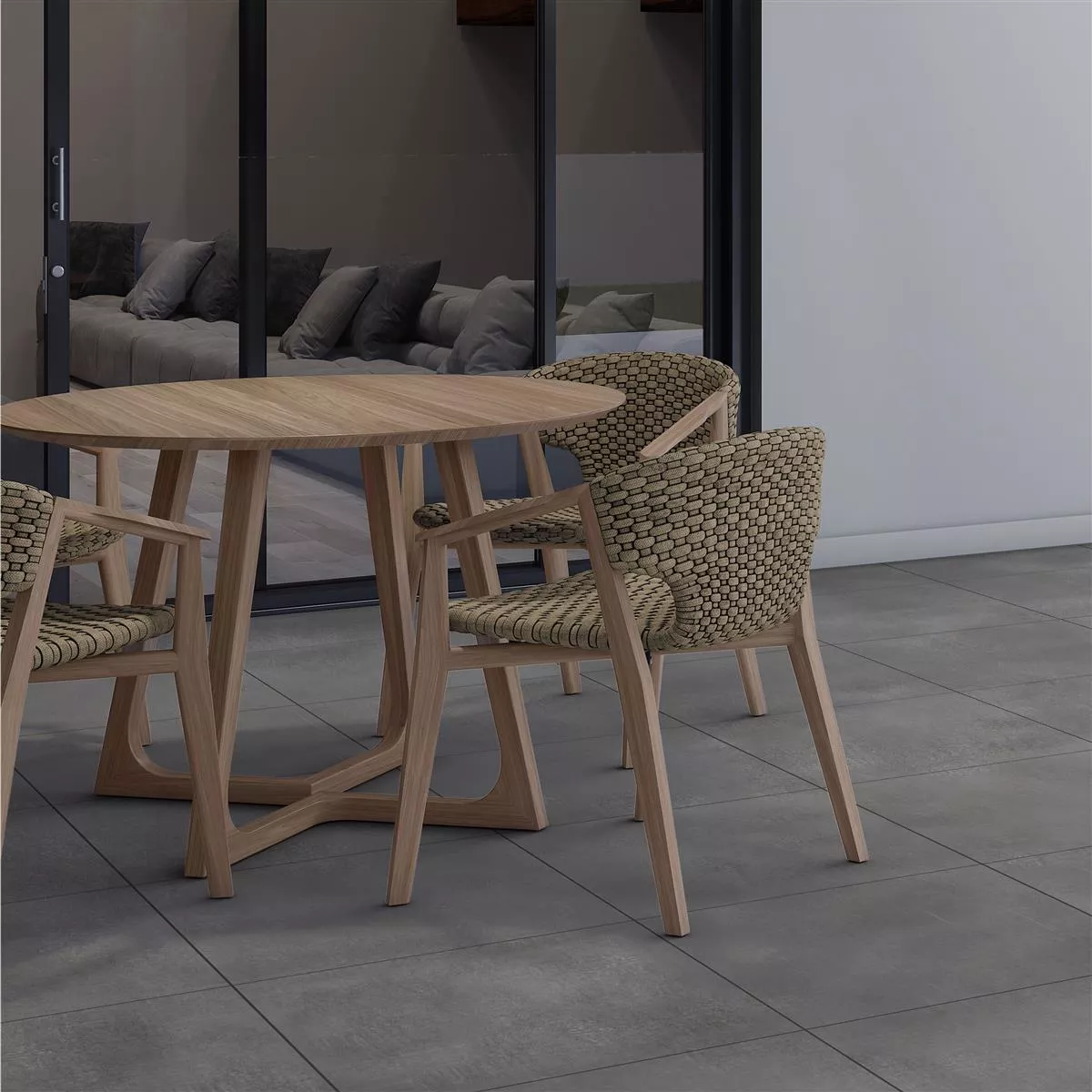Hergestellt aus Feinsteinzeug, einem langlebigen und widerstandsfähigen Material, bieten diese Terrassenplatten eine hohe Beständigkeit gegenüber verschiedenen Witterungseinflüssen und Abnutzung. Sie sind frostbeständig, dass sie auch bei extremen Temperaturen ihre Stabilität und Optik behalten. Diese Eigenschaft macht sie ideal für den Einsatz in Regionen mit kaltem Klima oder starken Temperaturschwankungen.