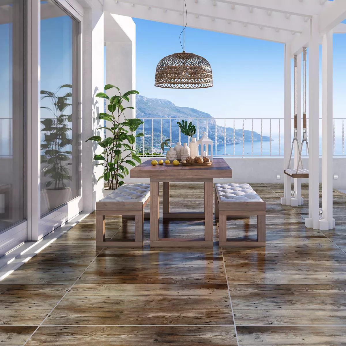 Hergestellt aus hochwertigem Feinsteinzeug, zeichnen sich diese Platten durch ihre Langlebigkeit und Widerstandsfähigkeit aus. Die matte, glasierte Oberfläche erzeugt eine authentische Holzoptik, die sowohl innen als auch außen hervorragend zur Geltung kommt. Die hohe Abriebfestigkeit (Abriebklasse 4) und die Rutschhemmung von R10 sorgen für zusätzliche Sicherheit und Strapazierfähigkeit.