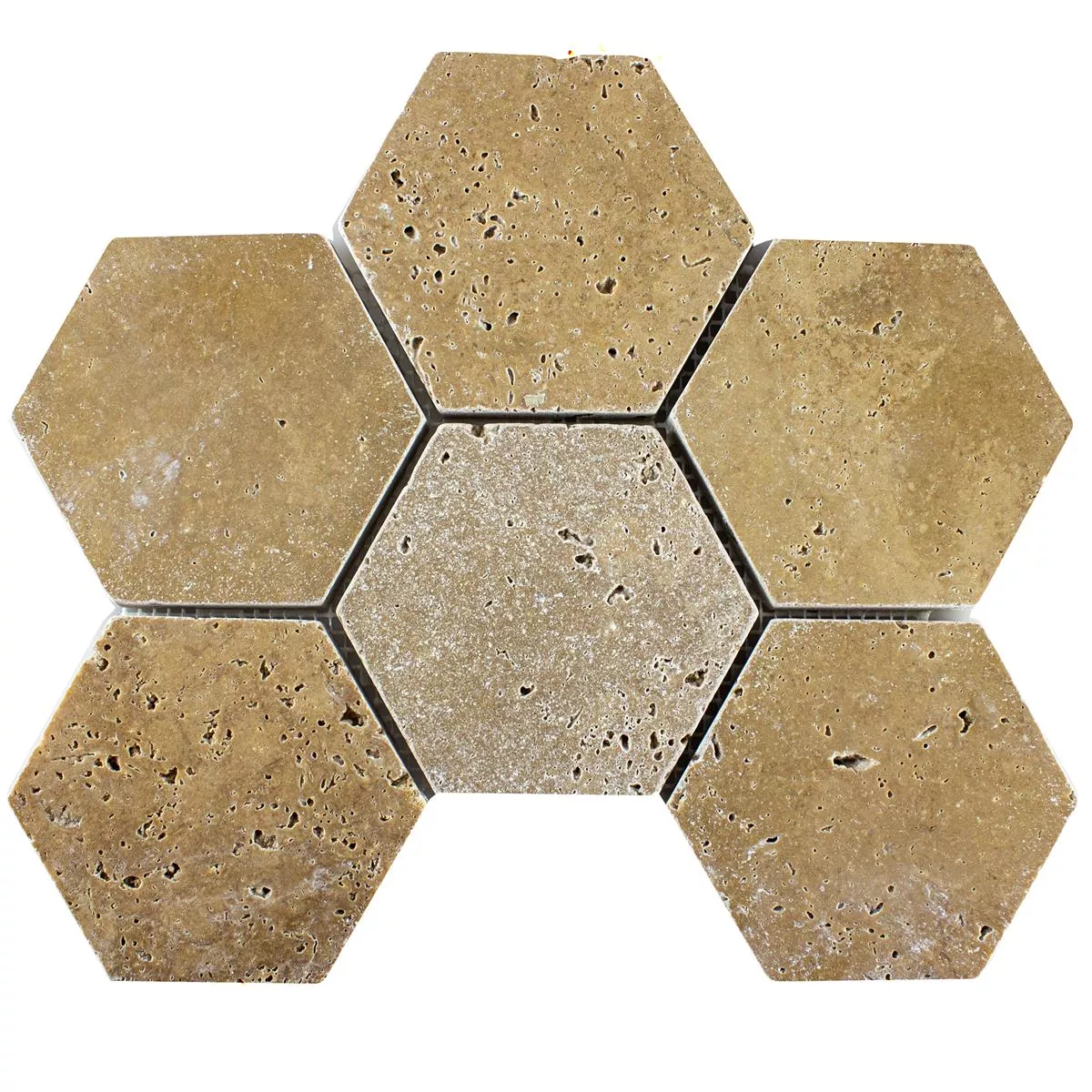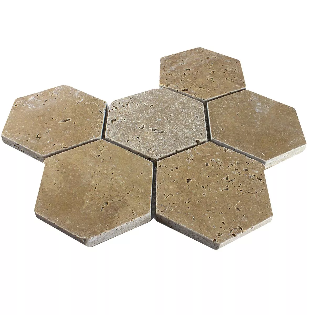 Travertin Naturstein Mosaikfliesen Mercado Sechseck Braun