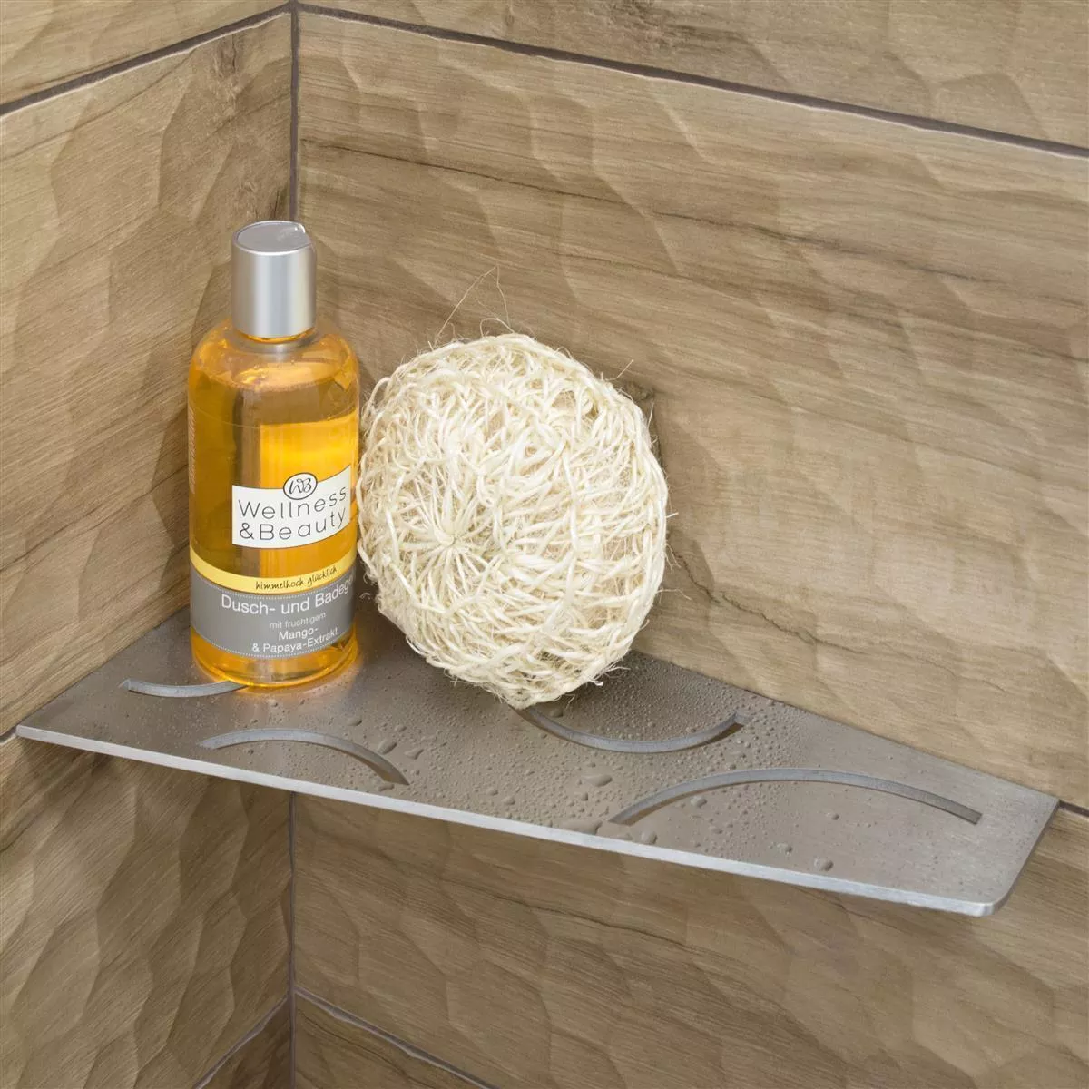 Schlüter-SHELF ist ein Wand-Ablagesystem – wahlweise aus gebürstetem Edelstahl oder aus Aluminium mit hochwertiger Pulverbeschichtung oder Wunsch-RAL-Farbe – in den Designs FLORAL, CURVE, PURE, SQUARE und WAVE. Es kann als Ablage an allen gefliesten Wandbereichen (z. B. Duschbereich, Fliesenspiegel von Küchenzeilen) eingesetzt werden.