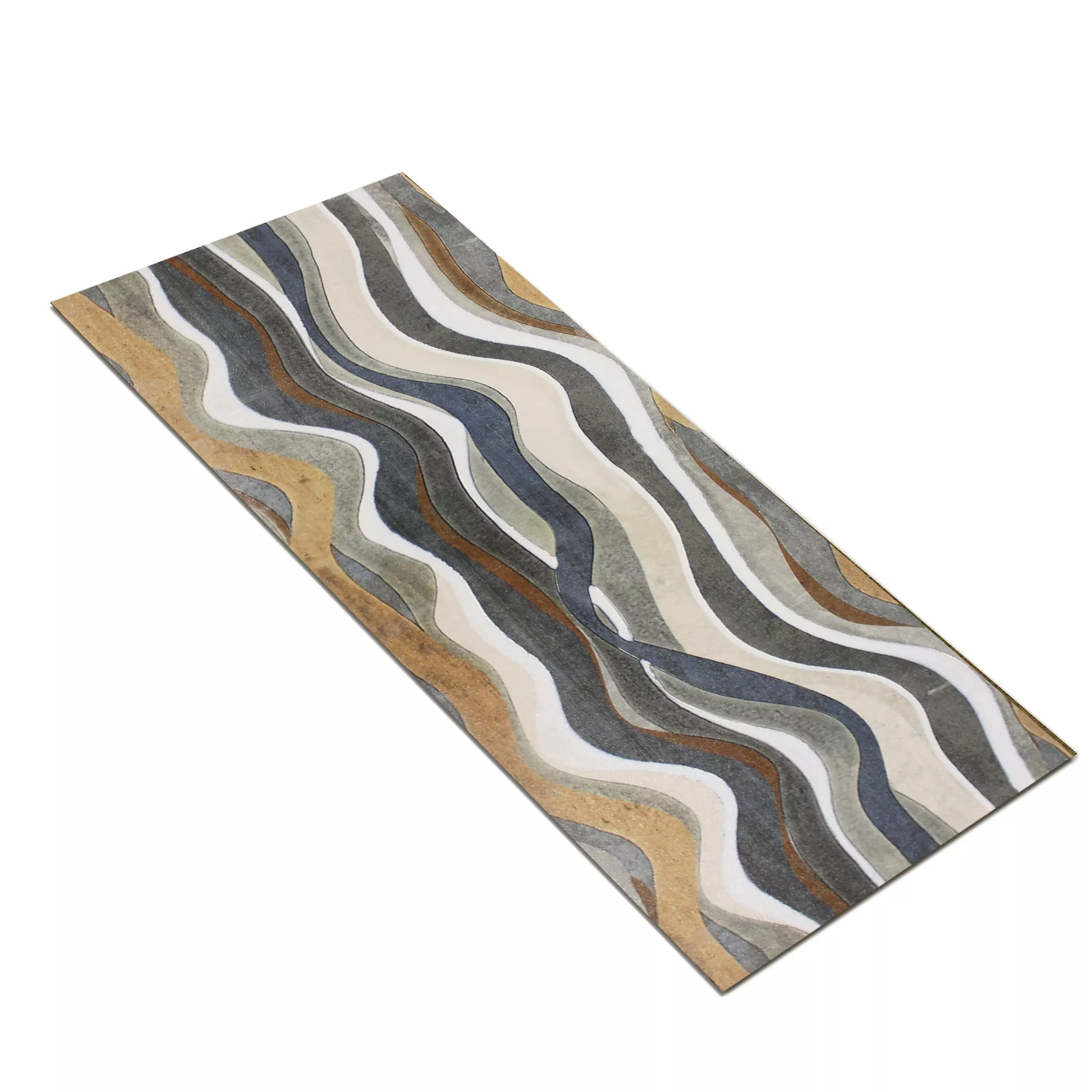 Die rechteckigen Badfliesen Fashion Dekor Bunt bringen frischen Schwung in jedes Bad, egal ob sie als akzentuierter Streifen angebracht oder eine ganze Wand damit gestaltet wird. Diese Badfliesen gibt es in zwei Variationen - einmal in bunt, mit einem wellenförmigen Muster und einmal in beige. Die bunte Wandfliese ist mit den Farben blau, grau, anthrazit, sandfarben, weiß und beige sehr ansprechend. Diese lassen sich sehr gut mit den beigen Fliesen kombinieren.
