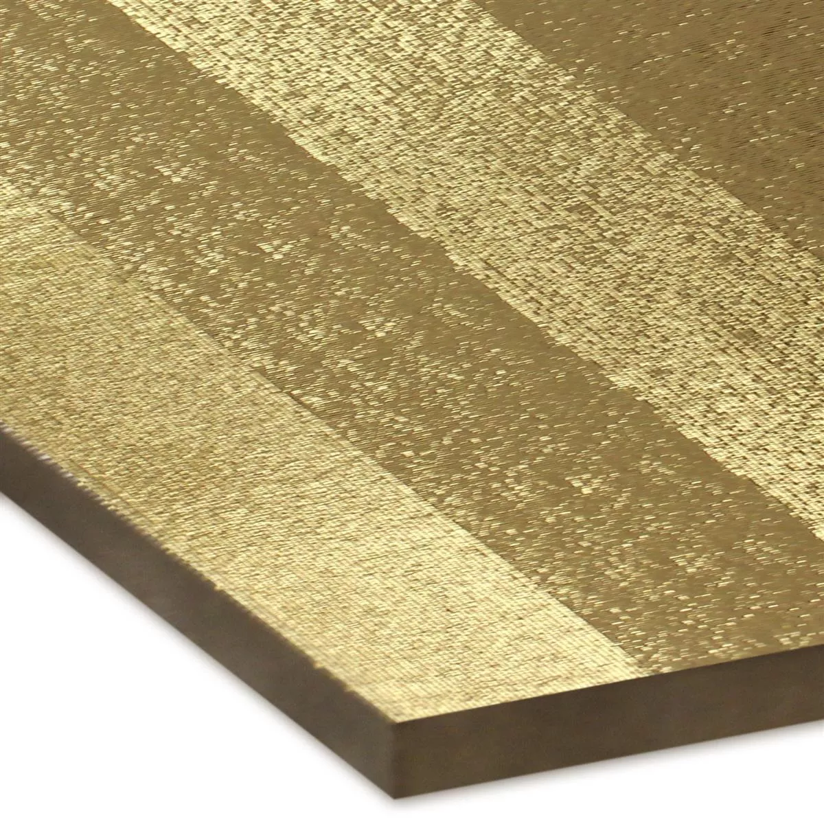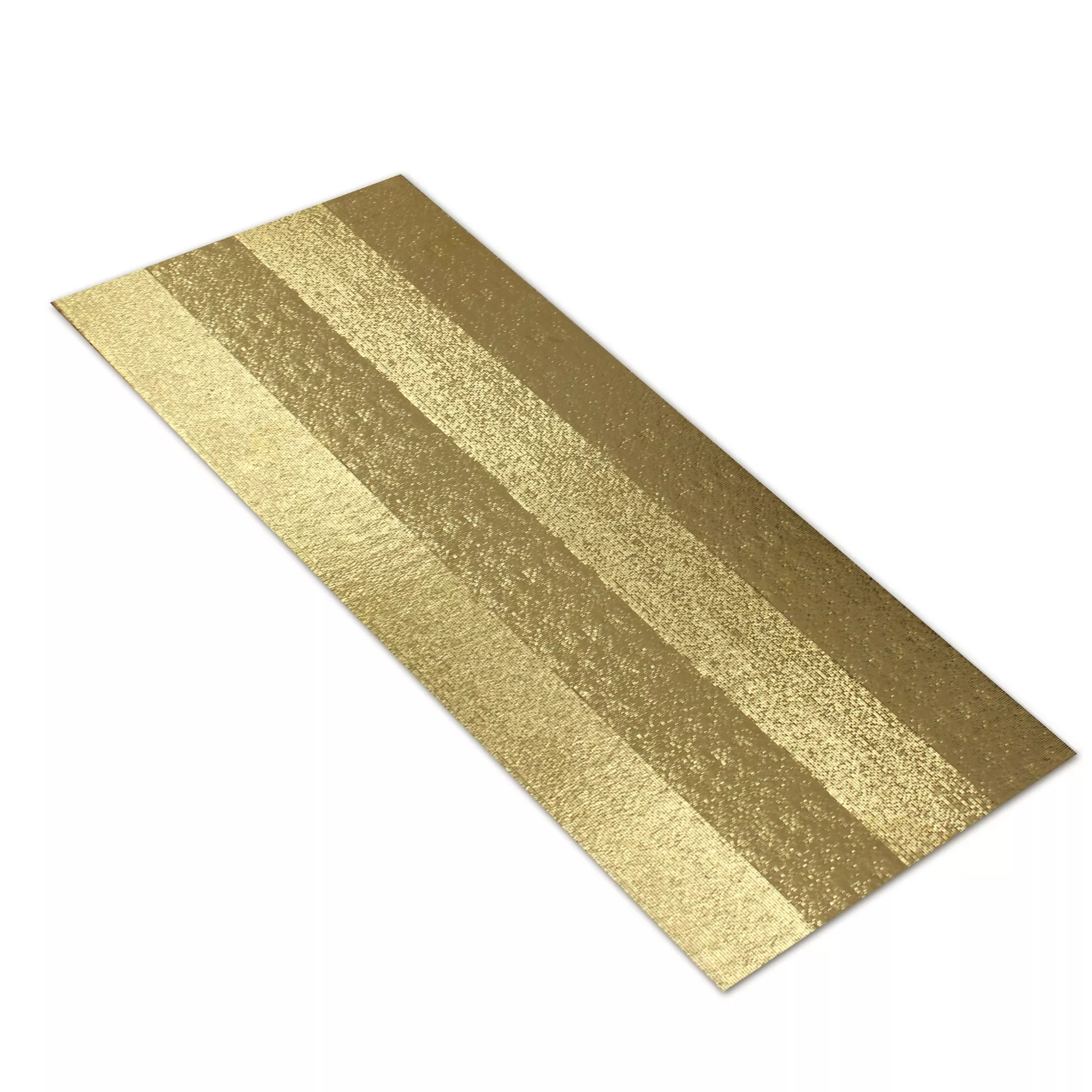 Die Dekor Wandfliese Melody in Gold Struktur 25 x 75 cm ist eine Keramikfliese und erobert das private Wohnen mehr und mehr aufgrund ihrer modernen Optik sowie ihrer optimalen technischen Eigenschaften. Angeboten wird sie in einer Größe von 25 x 75 cm sowie einer Stärke von 9,5 mm. Diese Fliesenserie findet man zudem in den Farben Weiß, Silber und Gold. Sie bietet eine glänzende Oberfläche, was die Badfliesen besonders edel aussehend lässt. Hergestellt wird sie rektifiziert, d.h. mit exakten 90 Grad Winkeln, so dass sie mit nur einer schmalen Fugenbreite verlegt werden kann.