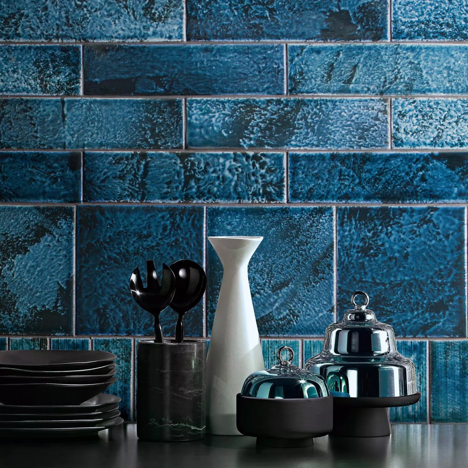 Wandfliese Vanroy Gewellt 6x24cm Blau