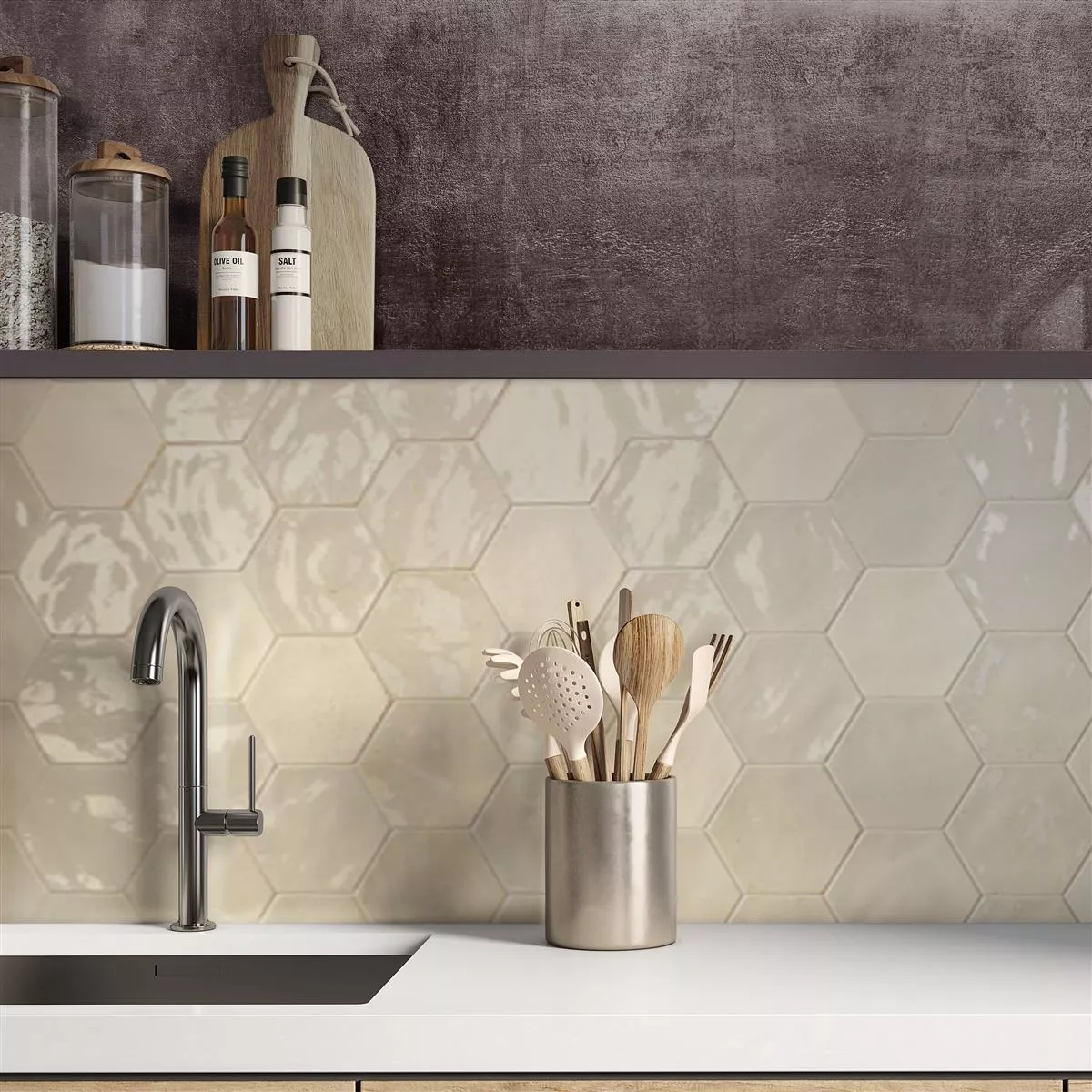 Wandfliesen Arosa Glänzend Gewellt Hexagon Weiß 17,3x15cm