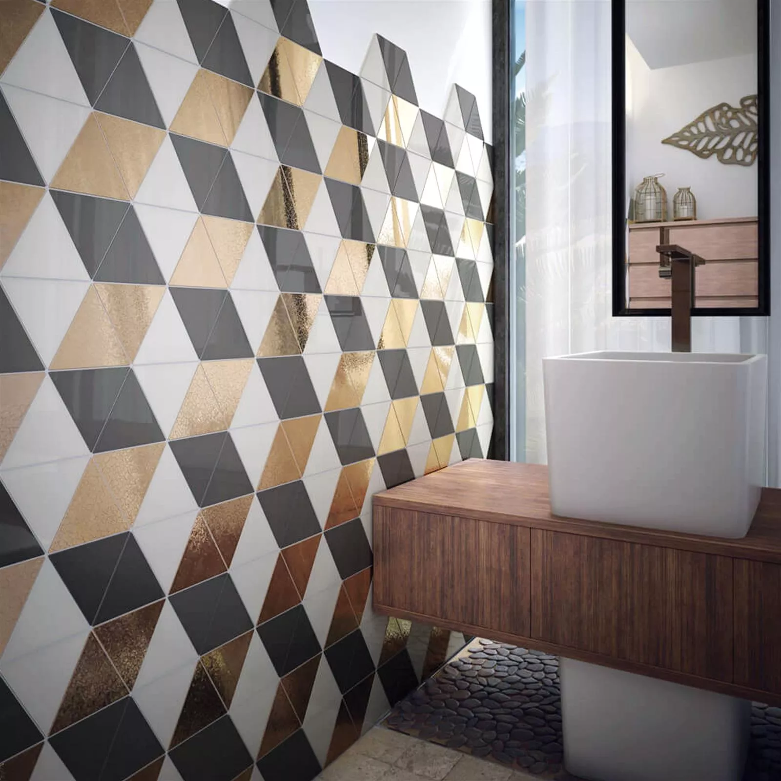 Mit einer Größe von 10,8x12,4cm beeindruckt die exklusive Wandfliese Britannia nicht nur mit ihrer dreieckigen Form. Die robuste Fliese hat eine Stärke 9,3mm und ist für viele kreative Projekte , vorzugsweise im Innenraum, geeignet. Das Material ist Steingut. Sie ist in den Farben Blau, Creme, Gold, Grau, Hellblau, Hellgrau, Mint, Schwarz, Weiß, und Beige erhältlich und ein Eye Catcher in jeden Raum.