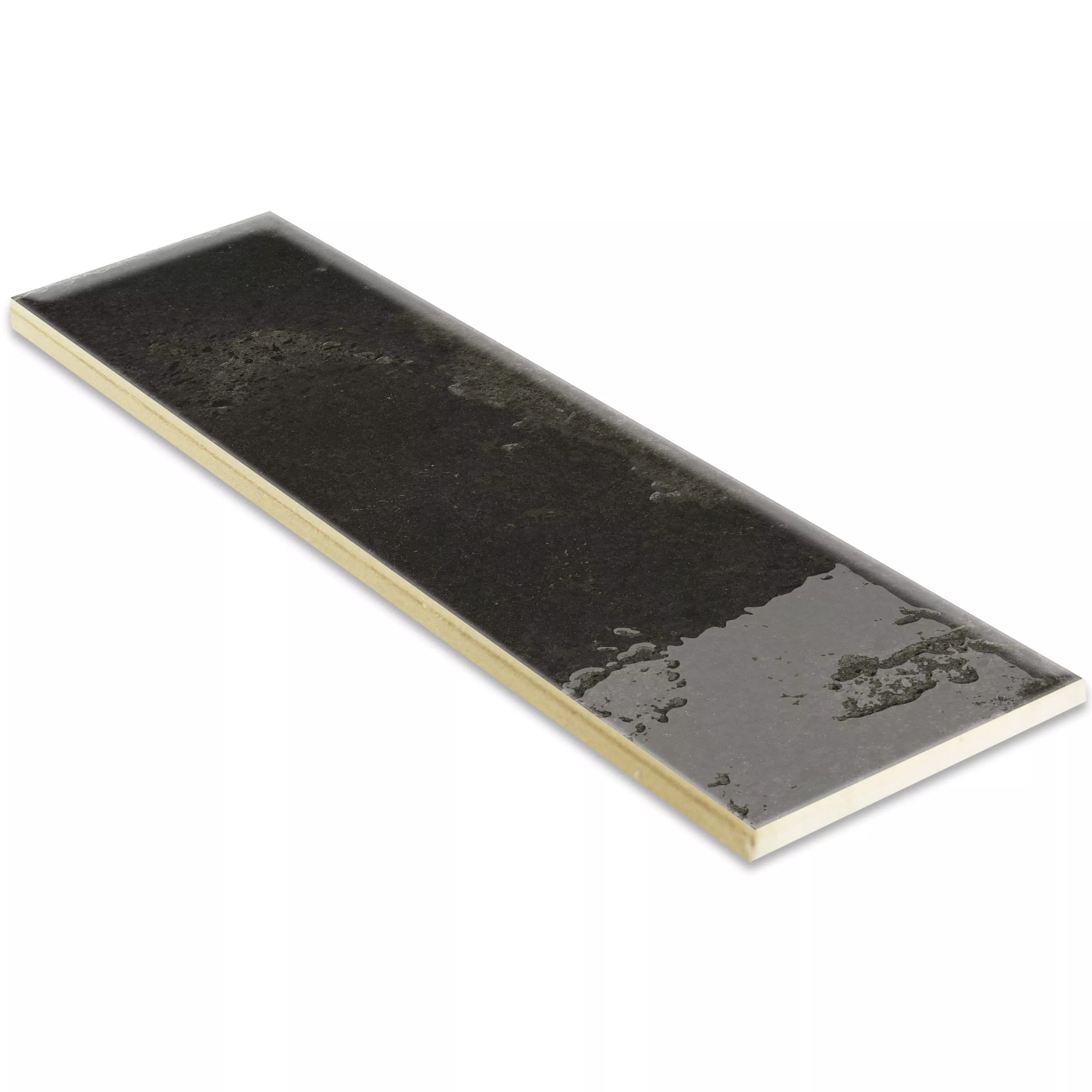Wandfliesen Lara Glänzend Gewellt 10x30cm Schwarz