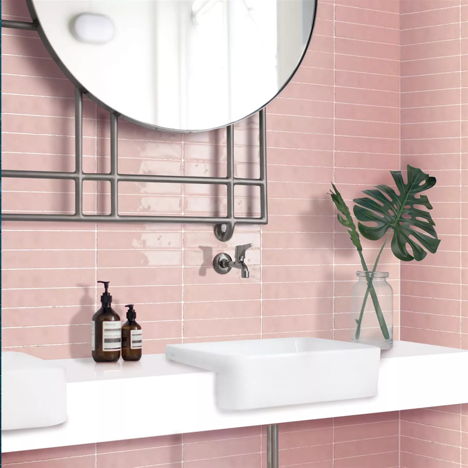 Wandfliesen Montreal Gewellt Pink 5x25cm