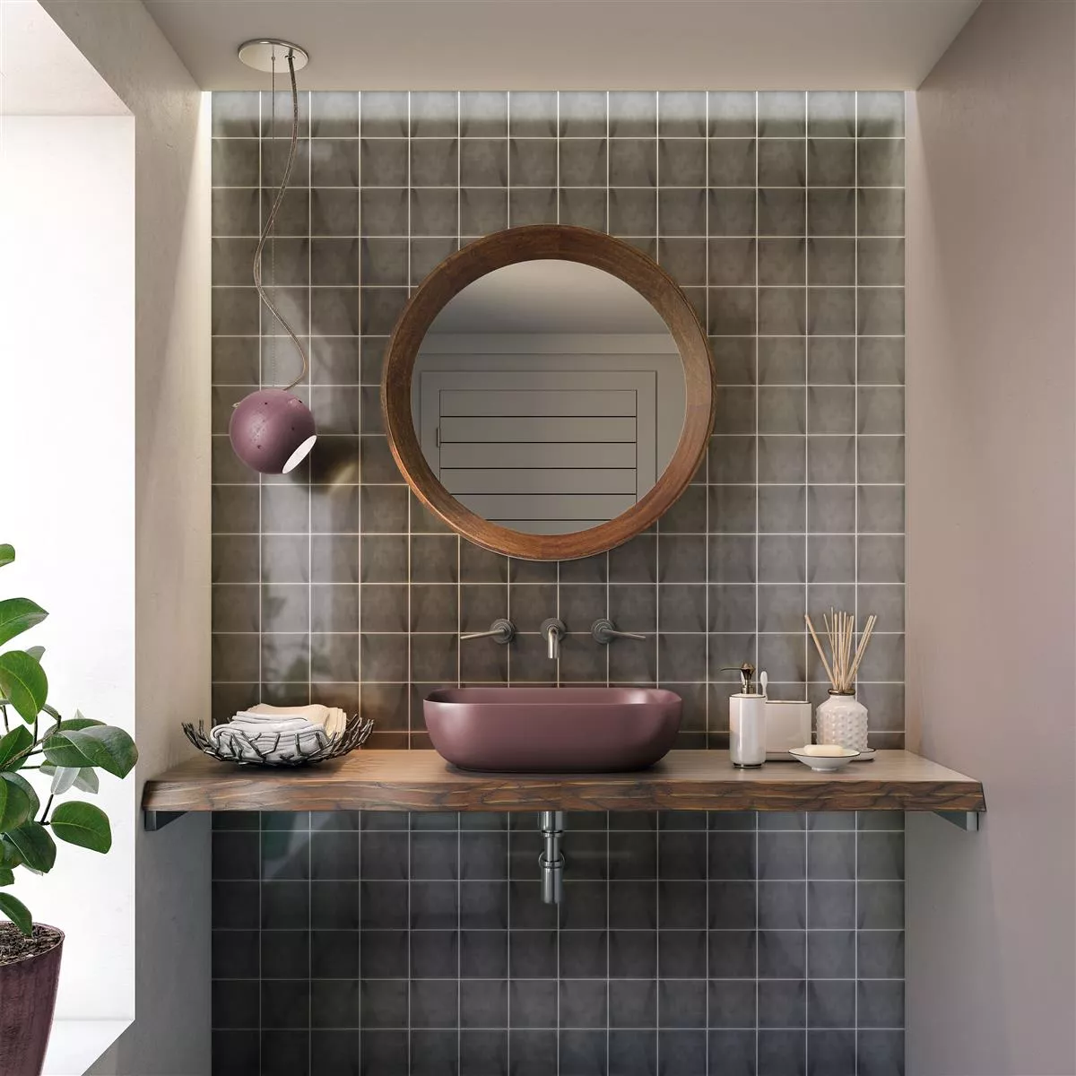 Wandfliesen Tamaris Eloy Glänzend Gewellt Dunkelgrau 13x13cm
