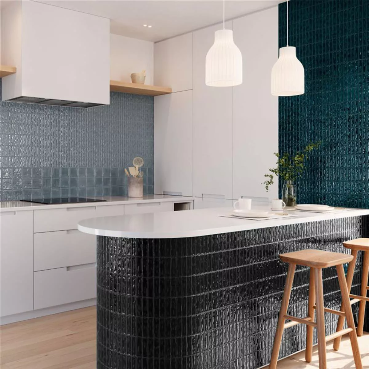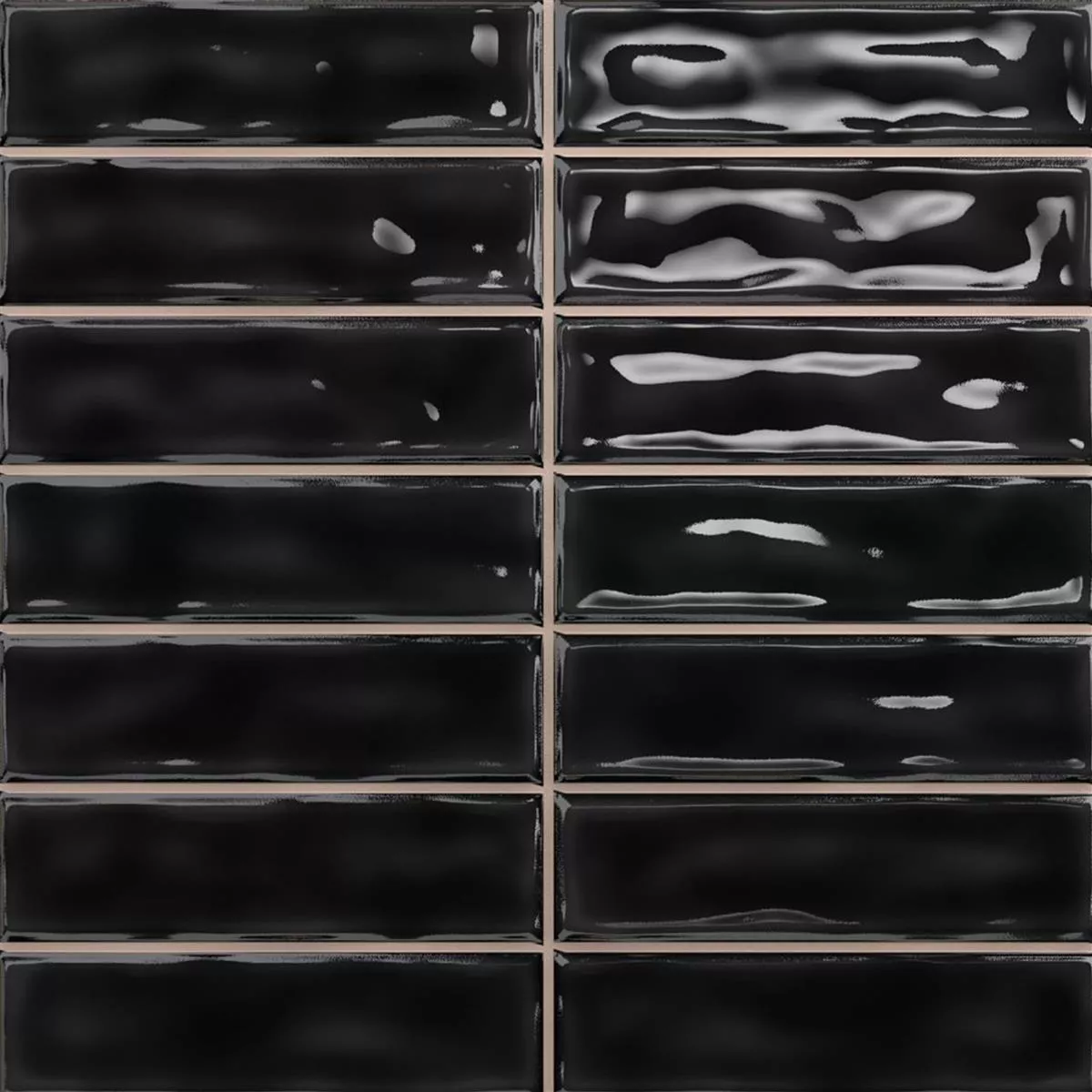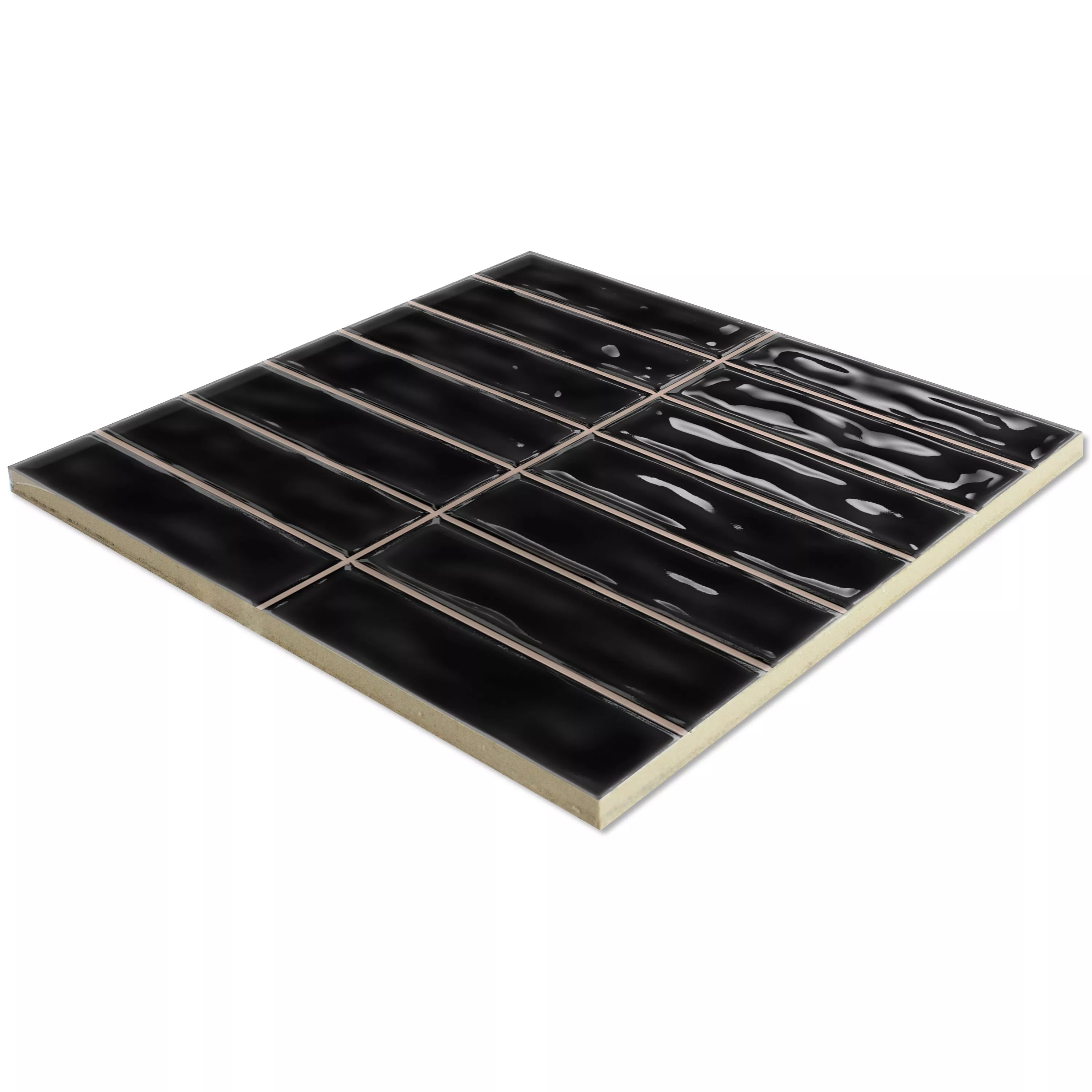 Wandfliesen Verbania Stäbchen Glänzend Gewellt Schwarz 20x20cm