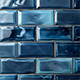 Glasfliese: Funkelnde Glasfliesen sind eine auffällige Wahl für einen Spritzschutz oder eine Duschfliese. Im Vergleich zu anderen Fliesen haben Glasfliesen die höchste Fleckenbeständigkeit.
